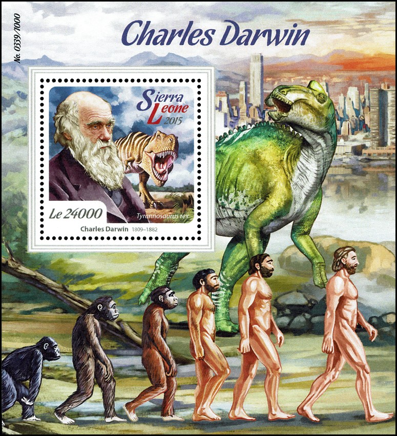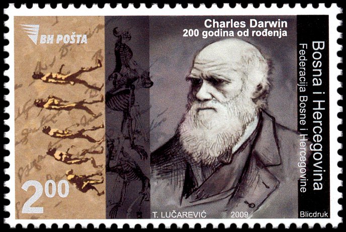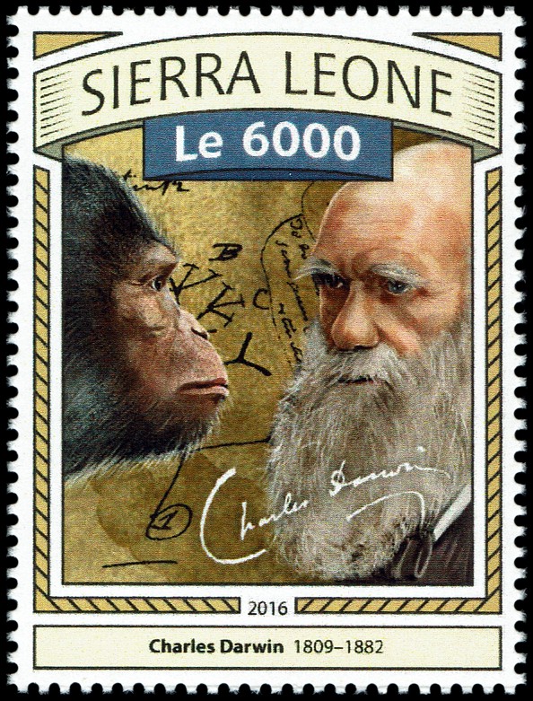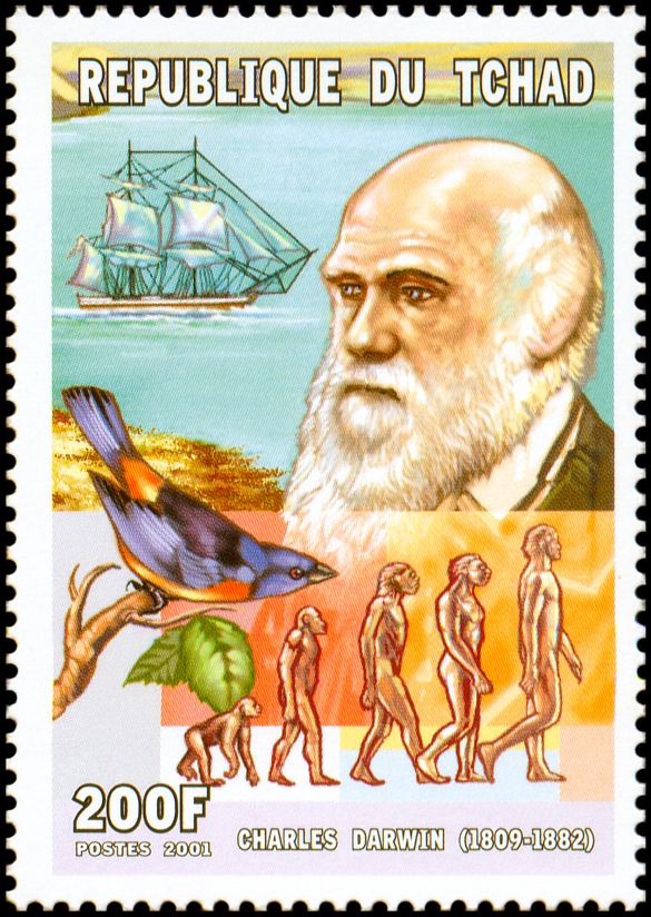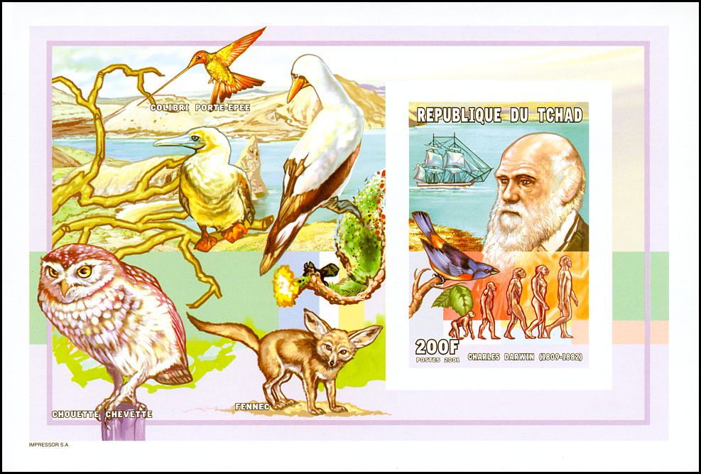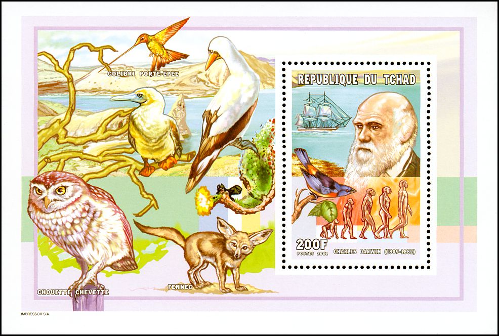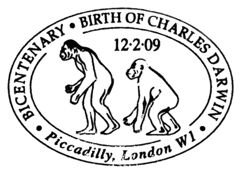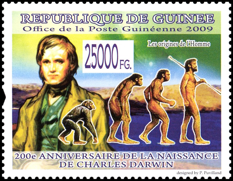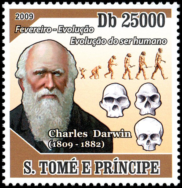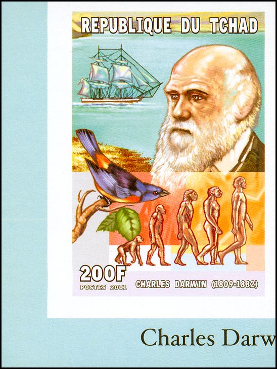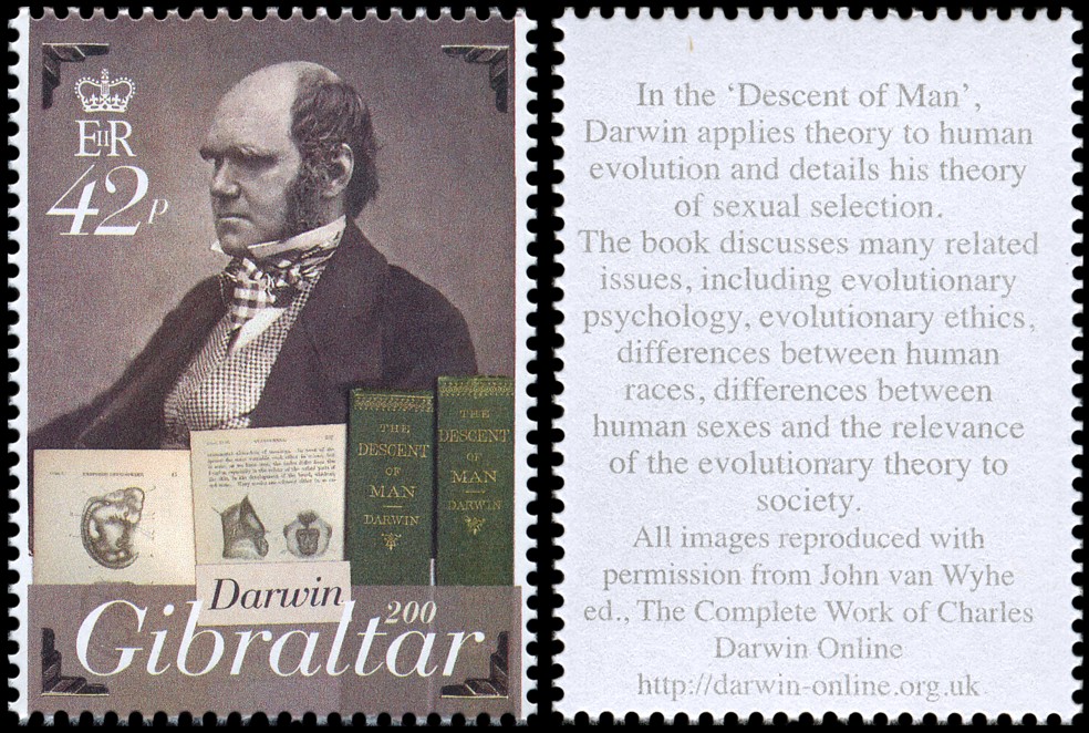 The Descent of Man, and Selection in Relation to Sex”, której krótka charakterystyka przedstawiona jest na stronie gumowanej znaczka. W pracy tej Darwin zastosował swoją teorię do ewolucji człowieka. Wprowadził też pojęcie doboru płciowego oraz wyjaśnił ewolucję kultury człowieka, różnice pomiędzy płciami oraz fizyczne i kulturowe cechy rasowe.