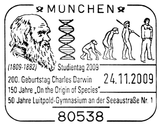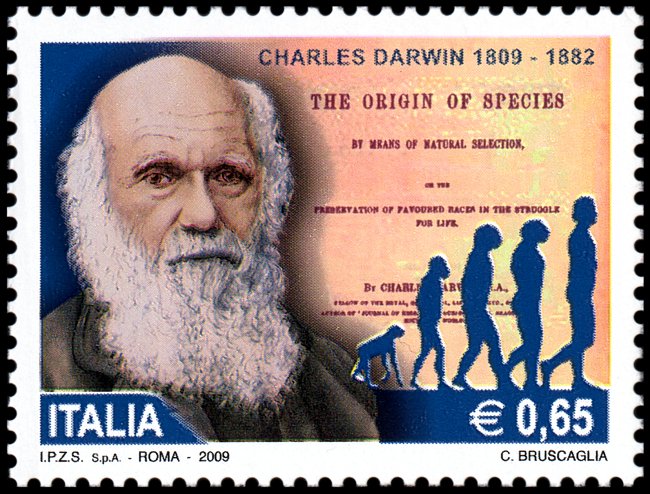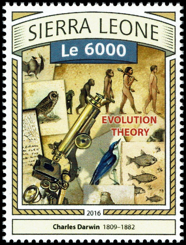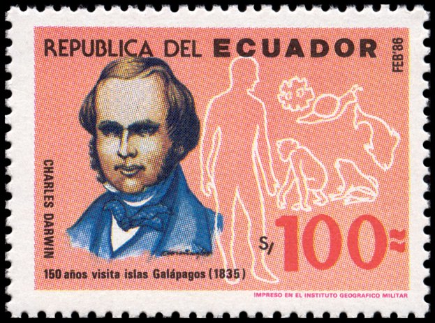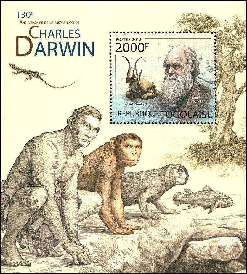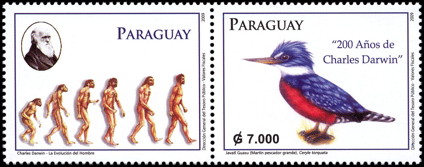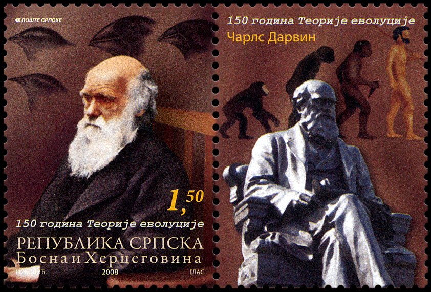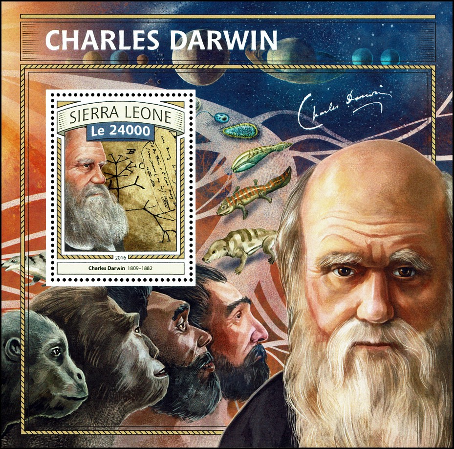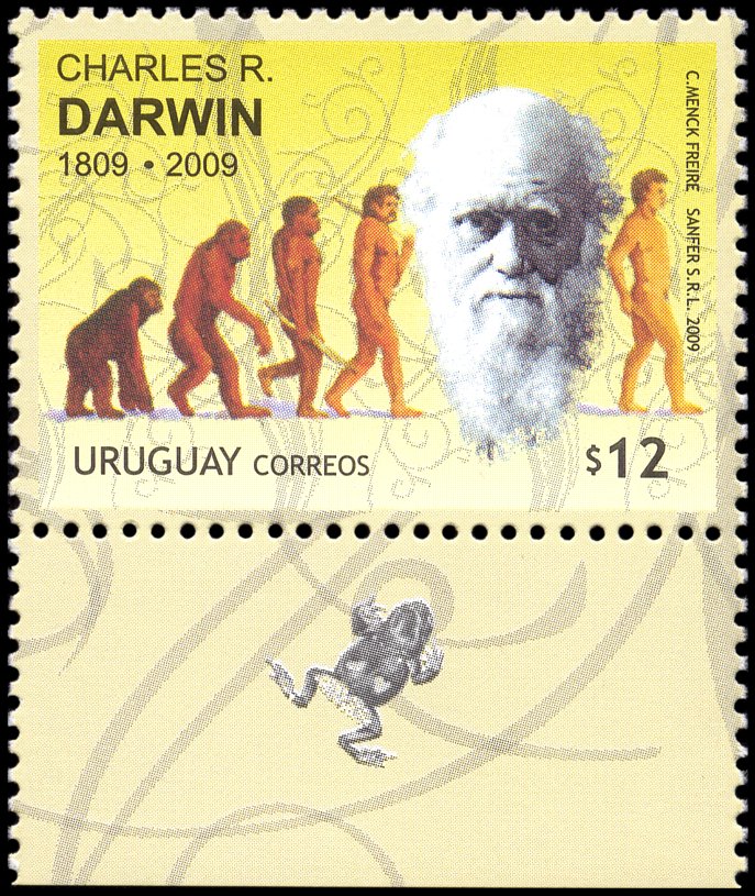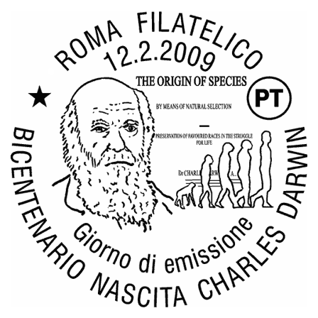 The Descent of Man, and Selection in Relation to Sex”, której krótka charakterystyka przedstawiona jest na stronie gumowanej znaczka. W pracy tej Darwin zastosował swoją teorię do ewolucji człowieka. Wprowadził też pojęcie doboru płciowego oraz wyjaśnił ewolucję kultury człowieka, różnice pomiędzy płciami oraz fizyczne i kulturowe cechy rasowe.
