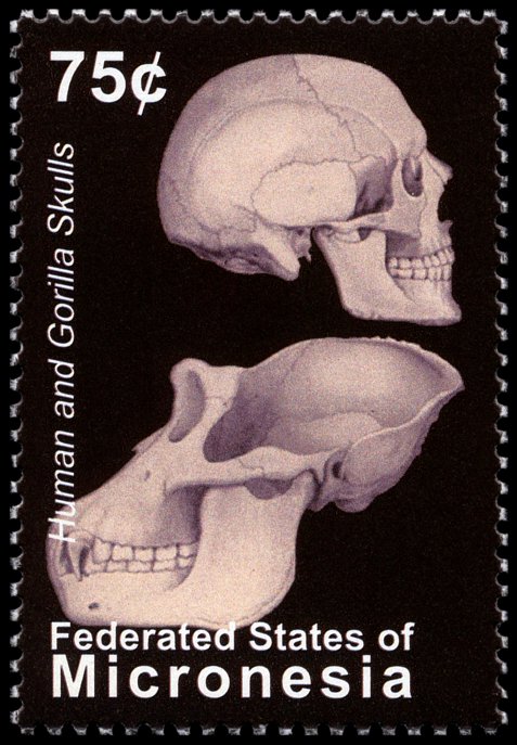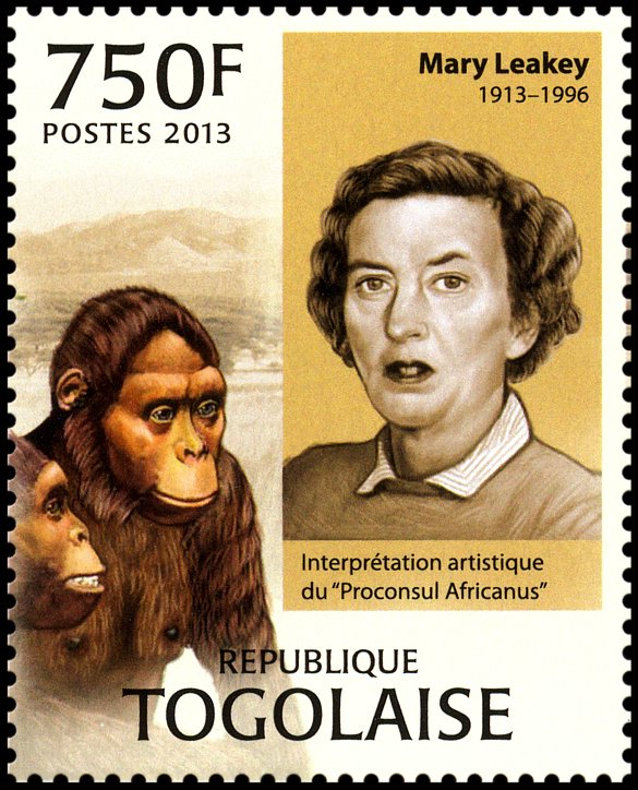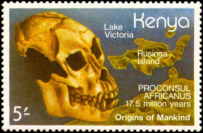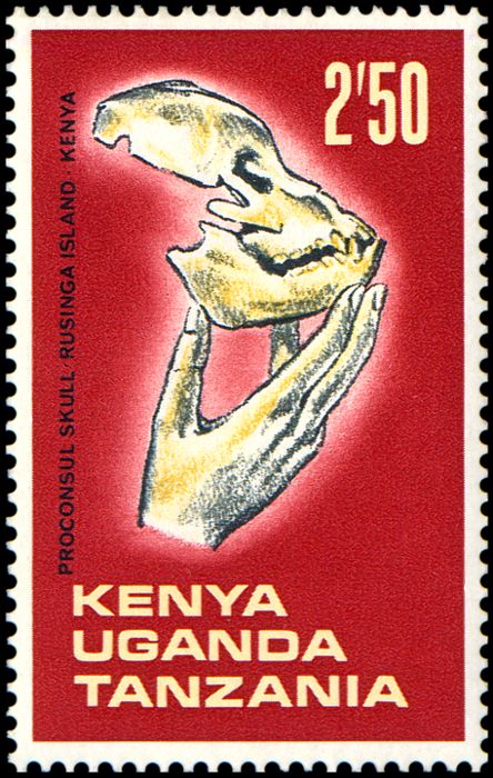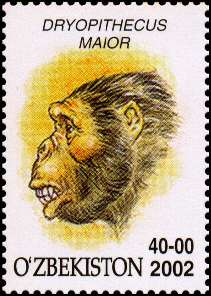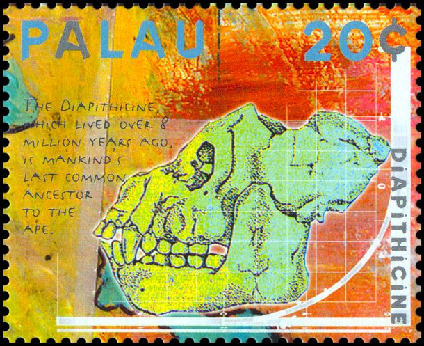 Uwaga: na znaczku podana jest informacja, że jest to należąca do Diapithicine czaszka sprzed 8 mln lat, ale taki takson nie istnieje!