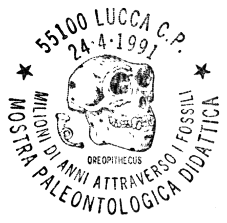 Oreopithecus bambolii, którego czaszkę pokazano na tym datowniku, to wczesnoplioceńska małpa wąskonosa. Jej skamieniałości odkrył w Toskanii i opublikował po raz pierwszy w 1872 roku francuski paleontolog Paul Gervais. W 1957 roku odkopano tam prawie kompletny szkielet. Dotychczas znaleziono szczątki należące do ok. 50 osobników. Datowane są one na przedział ok. 9–7 mln lat. Oreopitek był związany zapewne bardziej ze środowiskiem bagiennym niż z sawanną, czy lasem. Prawdopodobnie przyjmował postawę dwunożną, ale budowa jego ramion i palców rąk świadczy o przystosowaniu do nadrzewnego trybu życia (odżywiał się liśćmi). Osiągał masę 30–35 kg.