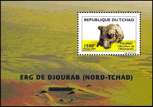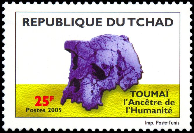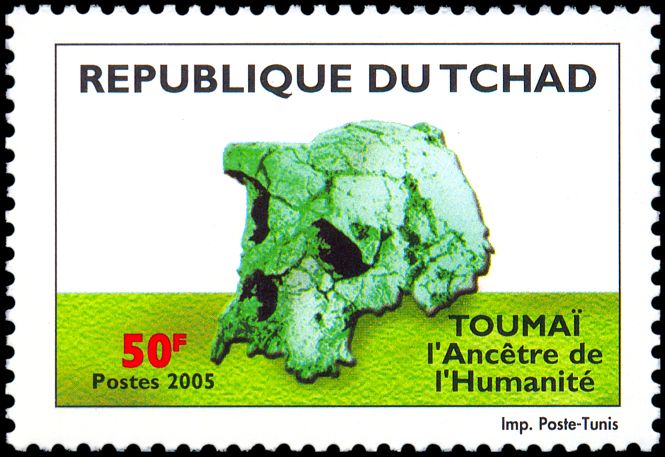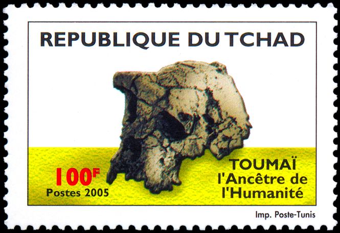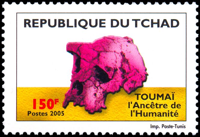 Prezentowany na znaczkach Czadu okaz (czaszka oznaczona symbolem TM 266-01-060-1) odkryty został przez A. Djimdoumalbaye w 2001 roku na późnomioceńskim stanowisku Toros-Menalla na pustyni Djurab w północnym Czadzie. Oprócz tej kompletnej czaszki badacze znaleźli także inne kości, w tym kilka żuchw.