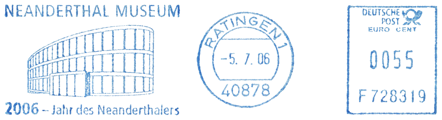Trzy datowniki stosowane z okazji 150. rocznicy odkrycia w Neandertal