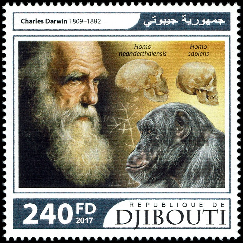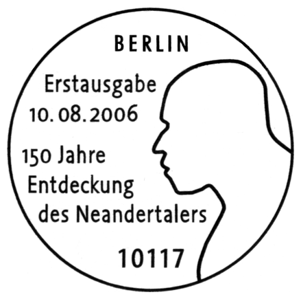 Znaczek wydany z okazji 150. rocznicy odkrycia dokonanego w Neanderthal (obecnie Neandertal) i jeden z datowników FDC