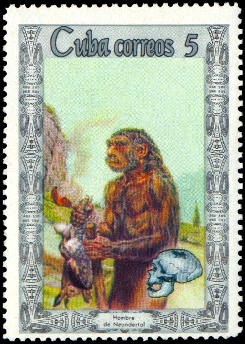 Początkowo neandertalczyków uznano za istoty głupie i okrutne, obdarzone niespotykaną i brutalną siłą (por. wizerunek na znaczku Kuby z 1967 r.), a cały gatunek za będący ślepą uliczką ewolucji. Ten pogląd ugruntowała publikacja szkieletu z La Chapelle-aux-Saints autorstwa Marcellina Boule'a. Wielki prestiż Boule'a oraz silne po I wojnie światowej antyniemieckie nastroje (pogląd, że neandertalczycy mogli być bezpośrednimi przodkami