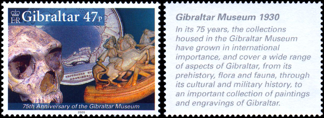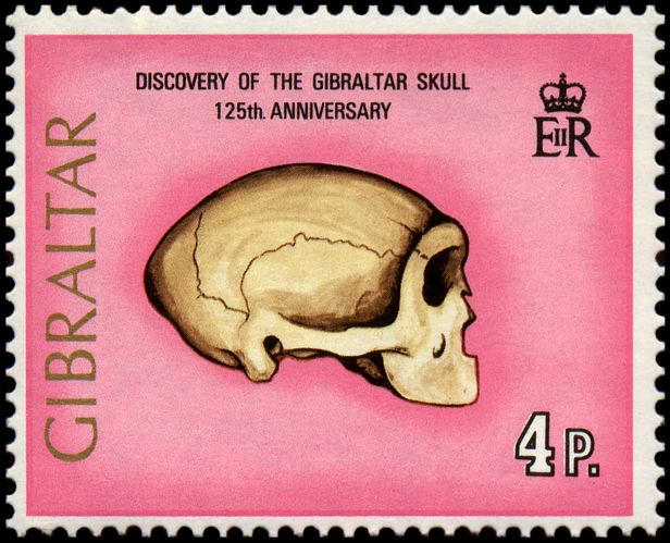 Calpe). Jest to czaszka kobiety (ok. 47 tys. lat temu), choć początkowo uważano ją za męską (i tak też ją zrekonstruowano na znaczku Gibraltaru Mi 300 — po lewej).