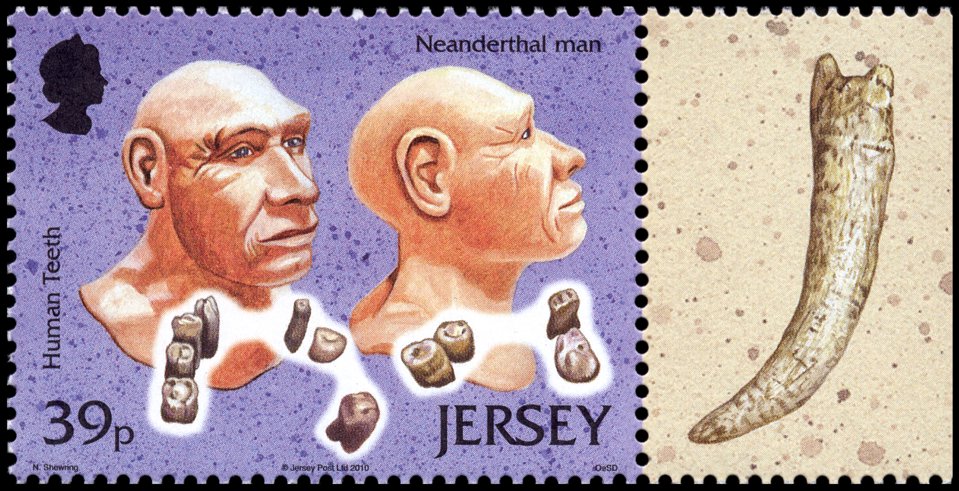 Zęby neandertalczyka znalezione w La Cotte de St Brelade (lub Lé Creux ès Fées), stanowisku archeologicznym odkrytym w 1881 r. (ogółem znaleziono tutaj 11 zębów, być może należących do jednego osobnika). Jest to jaskinia znajdująca się u stóp klifu morskiego, wycięta w granitowym cyplu koło miejscowości St Brelade, w płd.-zach. części wyspy Jersey. W latach 60. i 70. XX w. odkryto tu pozostałości plejstoceńskich ssaków, m.in. stosy kości