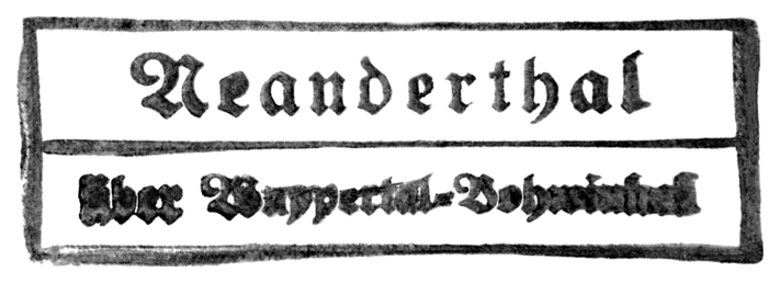 W sierpniu 1856 roku robotnicy eksploatujący wapień w „Kleine Feldhofer Grotte” w dolinie rzeki Düssel (na wschód od Düsseldorfu), nazwanej w 1850 roku Neanderthal (według dzisiejszej pisowni Neandertal, tj. „Dolina Neandra” — jej symboliczne przedstawienie znajduje się w herbie miasta Hochdahl, będącego od 1975 roku częścią Erkrath, Kr. Mettman, przedstawiającego czerwone koło młyńskie nad zieloną Neandertal) na cześć XVII-wiecznego niemieckiego kaznodziei, poety i kompozytora Joachima Neandra, zaczęli rozkopywać rumowisko składające się z przemieszanych wybuchem warstw mułu, skały i kamieni. Niespodziewanie odkopali sklepienie czaszki (na znaczku obok), następnie kości udowe, fragment miednicy, kilka żeber oraz kości ramieniowe i łopatki. Robotnicy uznali, że natrafili na szczątki