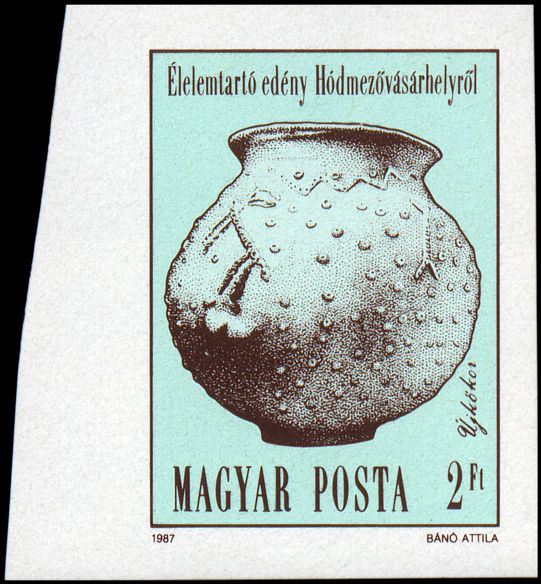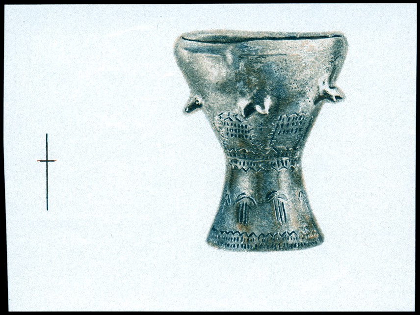 Na ilustracji koperty naczynie typu „hora” (od nazwy rumuńskiego tańca w kręgu), a w zasadzie tylko ażurowa nóżka (wys. 8 cm, średn. 16 cm) uformowana w kształcie sześciu tańczących postaci kobiecych, znaleziona w 1942 roku w Bodeştii de Jos (okr. Neamţ, Mołdawia rumuńska), na stanowisku Frumuşica kultury Cucuteni-Trypole (faza A, ok. 4500–3900 BC).