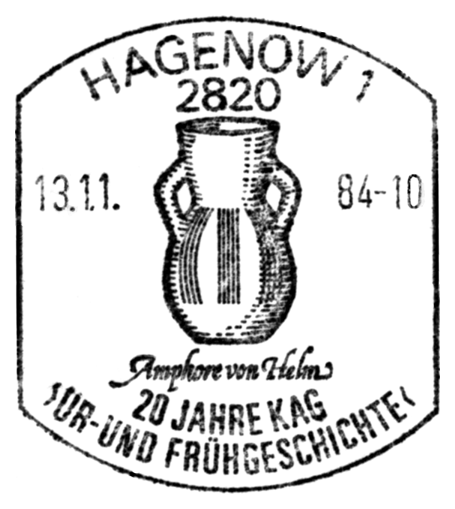 Dzban (wys. 19 cm) grupy północnej kultury pucharów lejkowatych (wczesna faza środkowego neolitu skandynawskiego, tj. MN I), zdobiony na brzuścu grupami pionowych linii rytych, znaleziony w 1840 r. w zniszczonym bezkomorowym grobowcu megalitycznym (wymiary ok. 16×7×1,20 m) w Helm koło Wittenburga (Lkr. Ludwigslust, Meklemburgia-Pomorze Przednie).