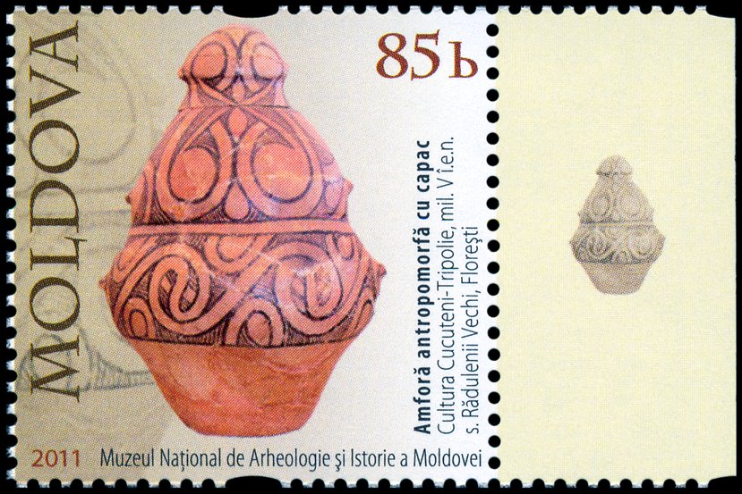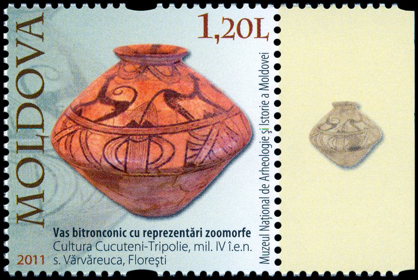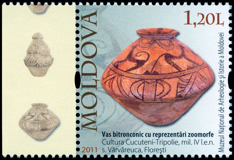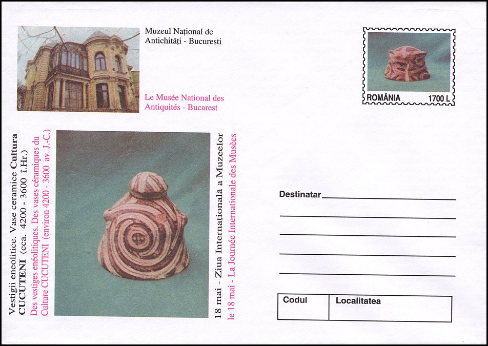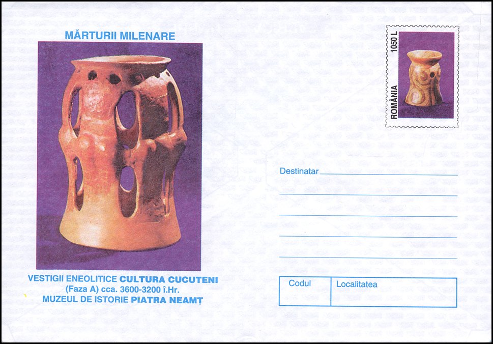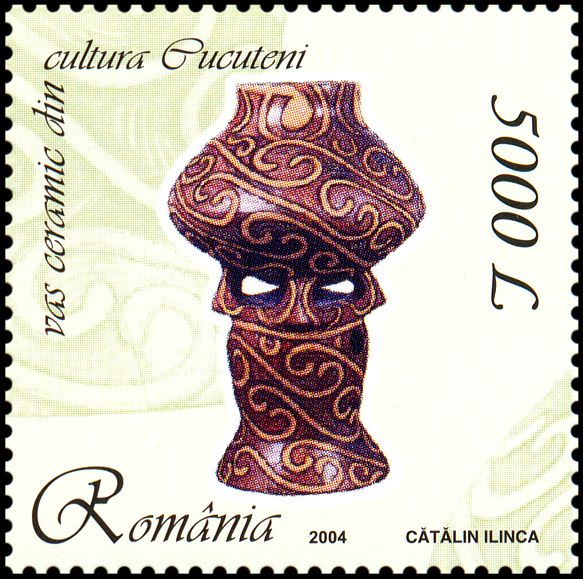 Na znaku opłaty tej kartki pocztowej pokazano pokrywkę naczynia kultury Cucuteni-Trypole (zapewne z fazy A