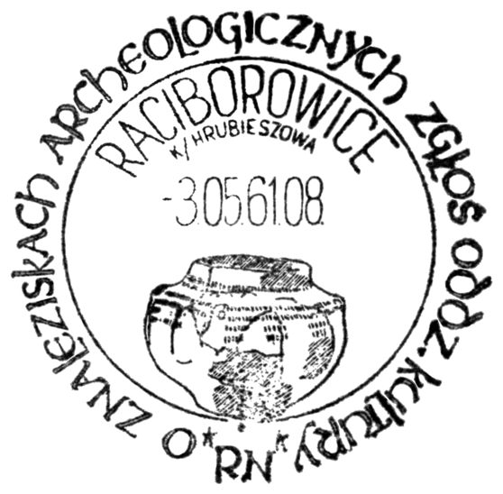 W centralnym polu tego datownika znajduje się charakterystyczna amfora, od której utworzono nazwę dla plemion posługujących się takimi naczyniami: ludność kultury amfor kulistych. Naczynie to znaleziono w grobie na stan. II w Raciborowicach.