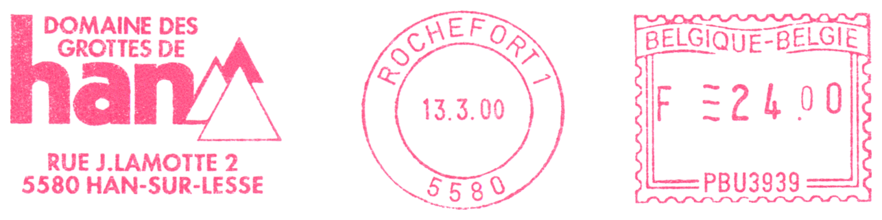 Jaskinia Grottes de Han-sur-Lesse / Grotten van Han (gm. Rochefort, prow. Namur, reg. Walonia) została odkryta w 1804 roku, a w 1856 otwarto ją dla zwiedzających. Całkowita długość jej korytarzy wynosi ok. 15 km (największa na terenie Belgii sieć utworów krasowych), z których tylko 3 km udostępniono turystom. Panuje w niej stała temperatura 12–13 °C. Największym pomieszczeniem jest