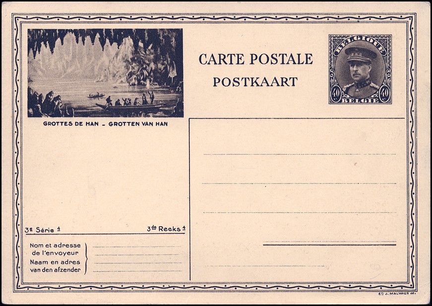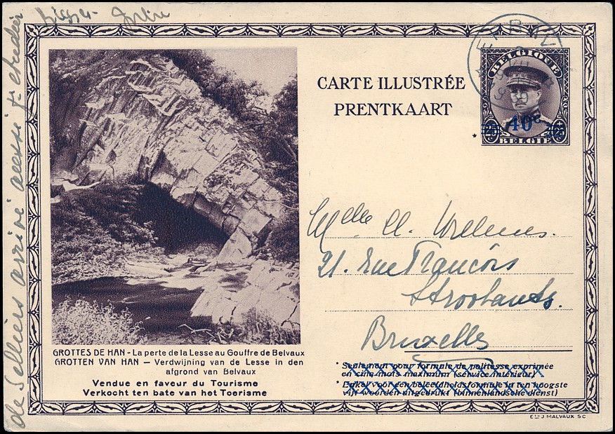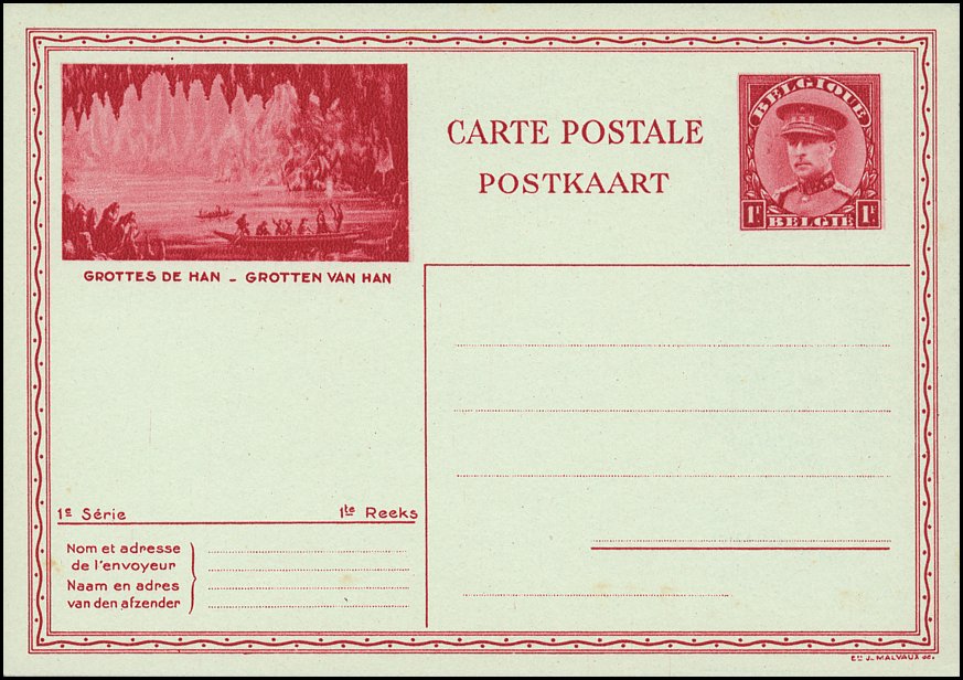 Belgia, Mi P 165 (1931), P 166 (1931), P 167 (1931), P 168 (1932/33), P 169 (1934), P 172 (1937/39), P 173 (1937/39), P 174 (1937/39), P :319 II — Publibel 1965 (1959), P 347 III — Publibel nr 2385 i 2420 (styczeń 1970), P 375 I — Publibel nr 2603 (1974)