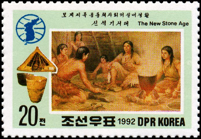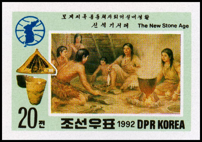 Tematyka osadnictwa pradziejowego wyjątkowo rzadko bywa wykorzystywana do ilustrowania materiałów filatelistycznych ze względu na trudność przedstawienia jej w zwięzłej, ale i jednocześnie czytelnej postaci graficznej, ale i tutaj można znaleźć coś ciekawego (niestety — trzeba było posiłkować się aż znaczkami Korei Północnej).