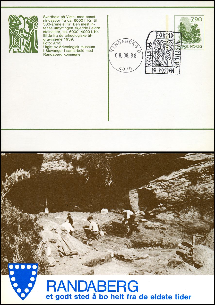 jaskinia Svarthola (Czarna Jaskinia) koło Viste (gm. Randaberg, okr. Rogaland), mierząca 9 m głębokości, 5 m szerokości i 3 m wysokości. Obecnie znajduje się ona dość daleko od brzegu morskiego, na wysokości 16 m n.p.m., jednak w epoce kamienia morze dochodziło prawie do wylotu jaskini. Zdjęcie pochodzi z badań wykopaliskowych przeprowadzonych w 1939 roku.