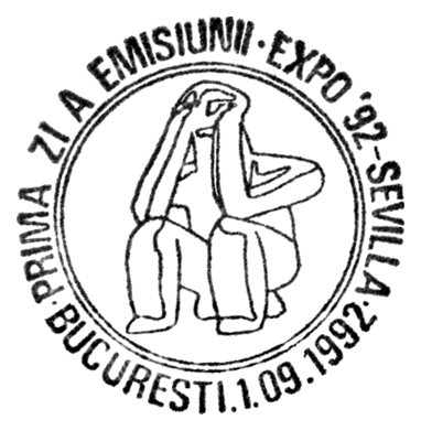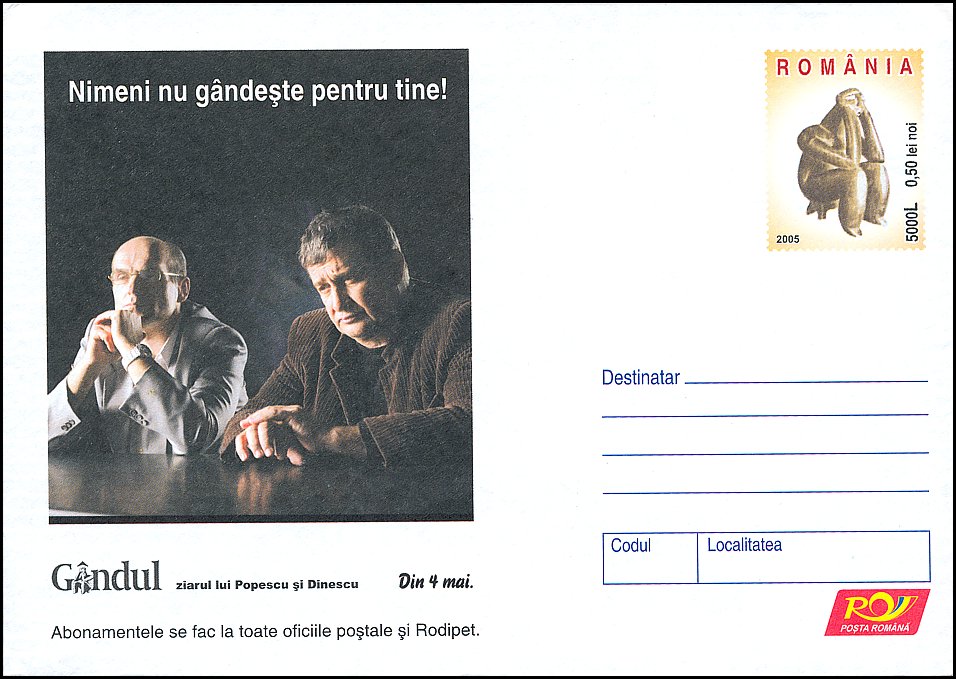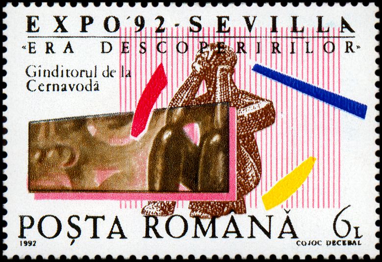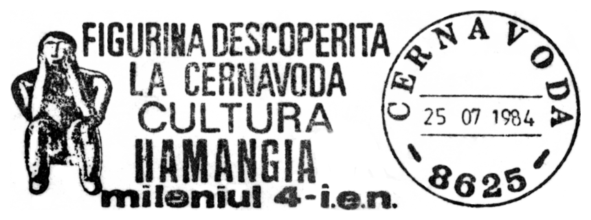 „Myśliciel” z Cernavodă jest dobry na prawie wszystkie okazje: na pierwszym stemplu użyto jego wizerunku jako ilustracji datownika poświęconego konkursowi matematycznemu, drugi kasownik upamiętnia Międzynarodowy Dzień Muzeów, trzeci wystawę Expo '92 w Sewilli, a na czwartym figurka ta została wpisana w literę â w słowie „Gândul” (= Myśliciel) — jest to logo gazety pod tym tytułem, która zaczęła ukazywać się w Bukareszcie w maju 2005 roku. Tylko ostatni z kasowników poświęcony jest samemu „Myślicielowi”.