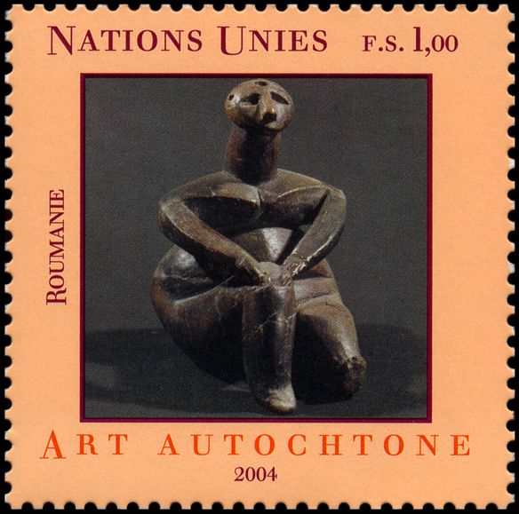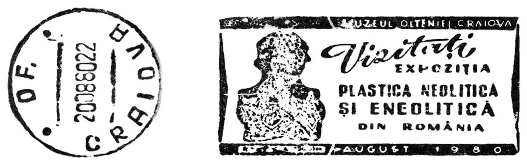 Na znaku opłaty pozbawiona głowy, bogato zdobiona białą inkrustacją, ceramiczna figurka kobiety z miejscowości Hotărani (okr. Olt, Wołoszczyzna). Figurkę odkrył w 1970 r., w kolistym obiekcie kultowym, dr Marin Nica. Jest ona dziełem ludności III fazy kultury Vădastra (ok. 5500–5000 BC).