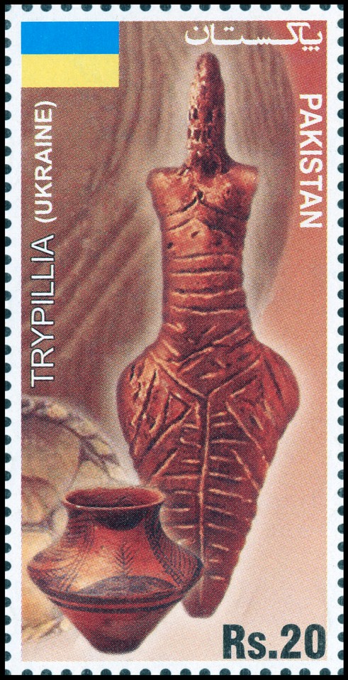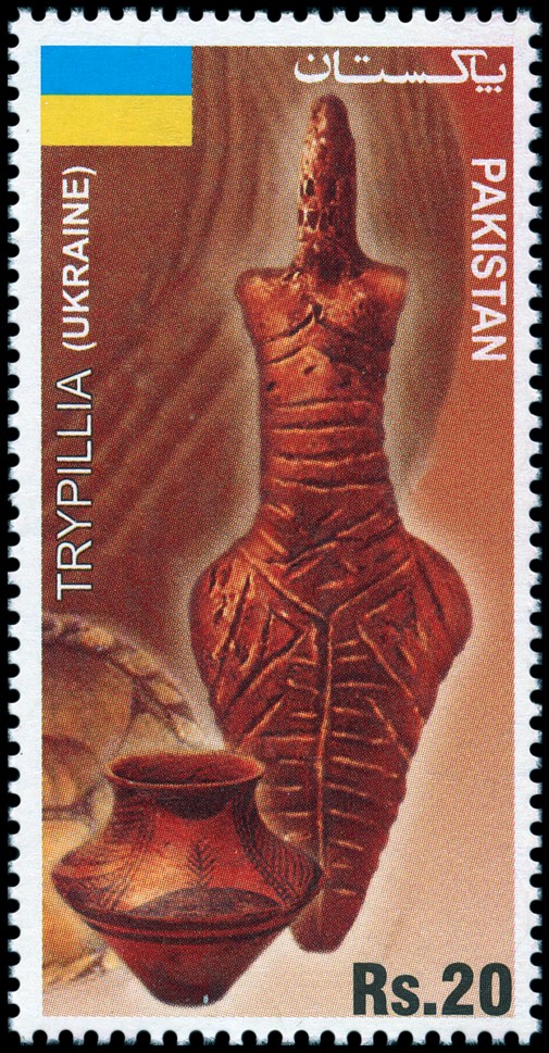 - Figurka kobiety (dł. 12 cm) z miejscowości Bernove-Luka (ukr. Бернове-Лука; rej. kelmieniecki, ob. czerniowiecki), zdobiona na całej powierzchni liniami rytymi (faza Trypole A/B I, 1. poł. V tys. BC).