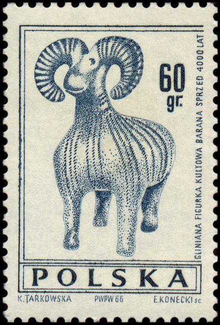 Gliniana figurka kultowa barana (wymiary: wys. 32,5 cm, dł. 37 cm, szer. 11,4 cm) pochodząca z osady ludności kultury pucharów lejkowatych w Jordanowie Śląskim koło Wałbrzycha (woj. dolnośląskie), datowana na ok. 3400 BC. Cały tułów i rogi barana pokrywa ornament złożony z odcisków lewoskrętnego sznura dwudzielnego. W tej samej jamie odkryto także dwa naczynia gliniane: kubek i pucharek oraz fragment krzemiennego noża (więcej na temat tej figurki można przeczytać w „Z Otchłani Wieków”, r. XXXIII, z. 3, s. 182–183).