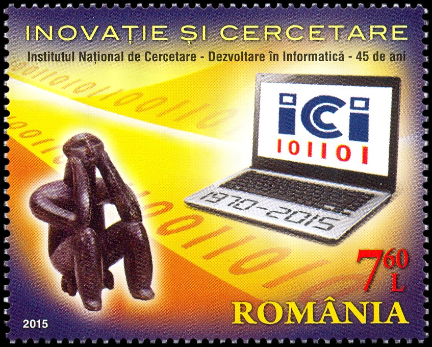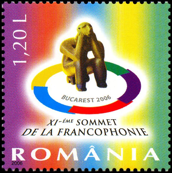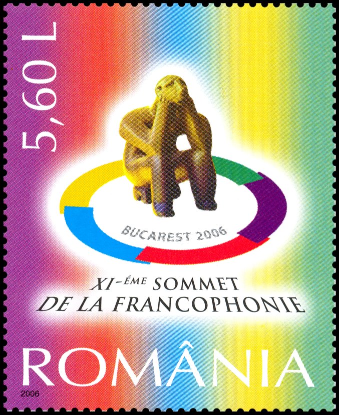 Znaczek powyżej prezentuje rewers banknotu o nominale 200 lei (nowych) z wyobrażeniem figurki „Myśliciela”