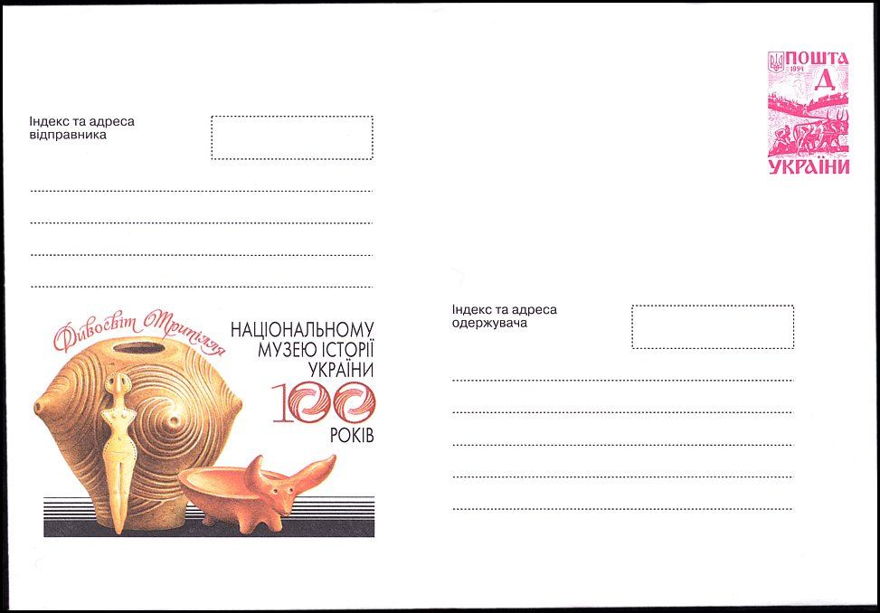 - Fragment gruszkowatego naczynia z Trypola (ukr. Трипілля, ros. Триполье; rej. obuchowski, ob. kijowski), z ornamentem rytym w formie dwóch węży (koniec V tys. BC). Naczynie to pochodzi z badań wykopaliskowych V. V. Chvojki w latach 1896–1899.