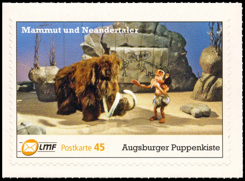 Neandertalczyk i mamut — scena z Teatru Marionetek w Augsburgu.