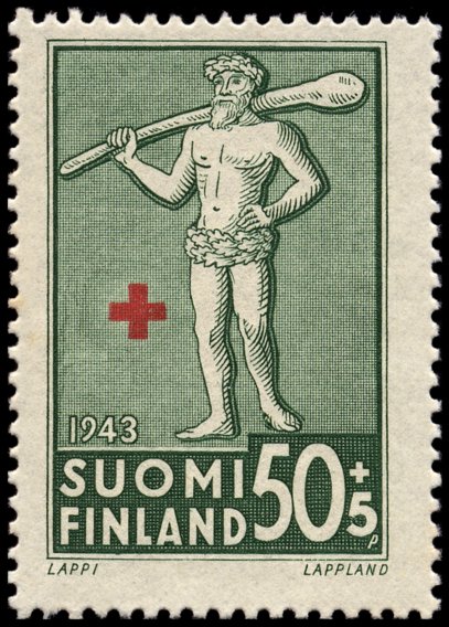 Jaskiniowiec albo „dziki człowiek” — w herbie Laponii, najbardziej na północ wysuniętego regionu Finlandii. Przedstawia on człowieka z maczugą, którego jedyne odzienie stanowią dwa wieńce z liści brzozy. Herb ten po raz pierwszy użyty został zapewne w 1611 roku, podczas pogrzebu króla szwedzkiego Karola IX Wazy.