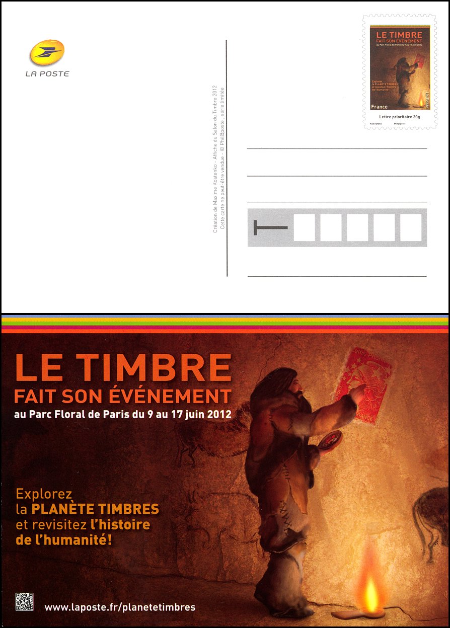 Jaskiniowiec malujący na ścianie jaskini... francuski znaczek pocztowy z Marianną.