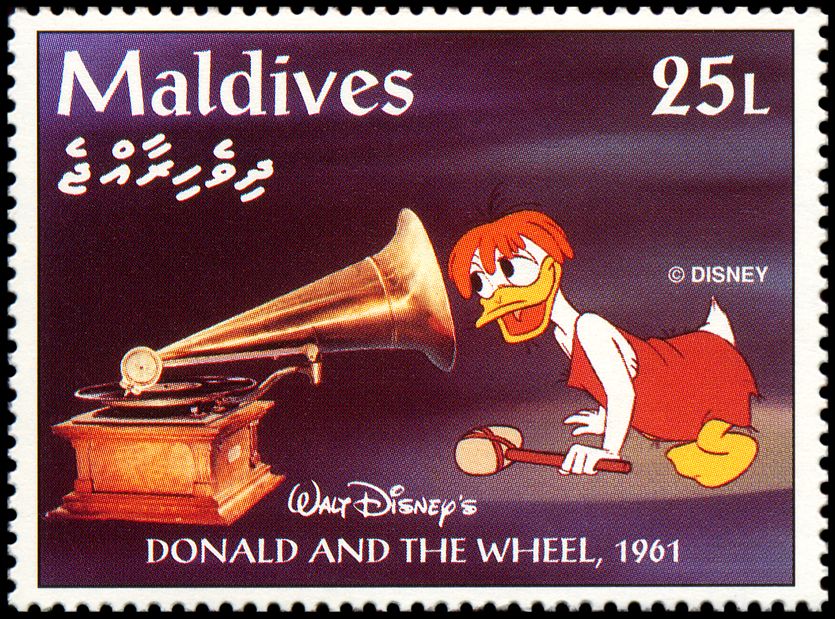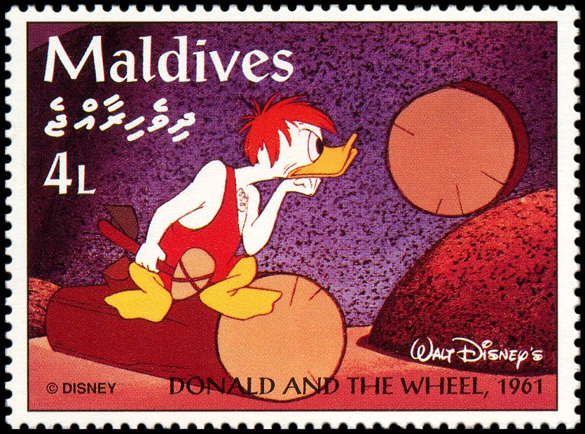 Cztery znaczki — cztery kadry z krótkiego (17 minut) filmu z wytwórni Walta Disneya „Donald i koło” (reżyseria Hamilton Luske, data premiery 21.06.1961.