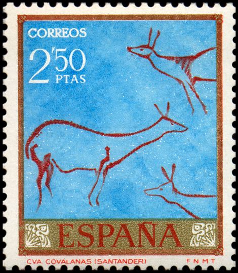 Samice jelenia — częściowo punktowane czerwone malowidło (nr C1, C4 i D1), fragment centralnego przedstawienia z jaskini Cueva Covalanas y La Haza w Ramales (prow. Kantabria). W sumie zdobione ściany obejmują część korytarza długości ok. 25 m. Kompozycję rozpoczyna przedstawienie jelenia w towarzystwie kropkowanych znaków. Główna scena obejmuje 17 łań i 1 konia. Poniżej znajdują się dwa znaki kropkowe, dwie kreski i linia sinusoidalna, przypominająca zarys szyjowo-grzbietowy sylwetki konia. Styl malowidła pozwala na jego datowanie na środkowy okres magdaleński (ok. 17–13 tys. lat temu).
