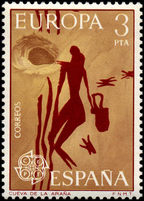 Kobieta wybierająca miód dzikim pszczołom (paleolit schyłkowy, ok. 9.000 BC), malowidło z jaskini Araña (prow. Walencja), odkryte w 1922 roku przez archeologa Hernándeza Pacheco. Znaleziono tutaj także neolityczny inwentarz kamienny (m.in. gładzoną siekierę).