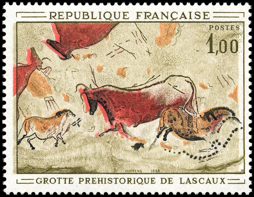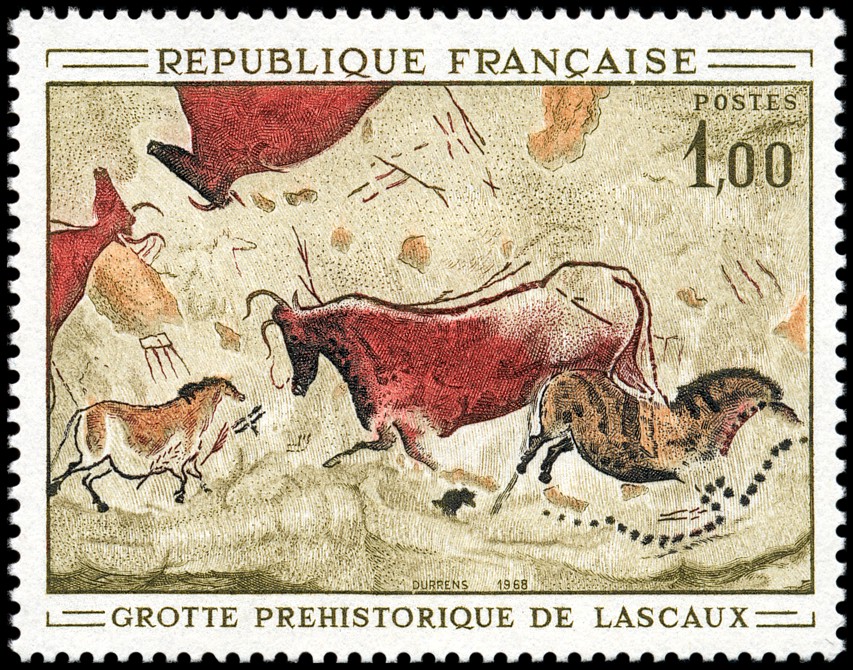 Jaskinia Lascaux koło Montignac, w dolinie Vézère (dep. Dordogne, reg. Akwitania), została odkryta przypadkowo 8 września 1940 roku przez czterech chłopców podczas wycieczki. Jest niezbyt głęboka, bowiem najdłuższe korytarze nie przekraczają 100 m długości. Od samego niemal wejścia otaczają widza wielkie (5 m) i drobne malowidła o żywych barwach: żelaziste czerwienie i ugry, prawie fioletowe czernie i brązy oraz biel i żółć, a wszystko to na złotawym tle wapiennych ścian. Największe postacie wydają się górować nad całym tłumem mniejszych motywów, umieszczonych poniżej, czasami częściowo zakrytych. Cały ten zespół malowideł nie powstał oczywiście w jednorazowym akcie twórczym. Zapewne narastał i przeobrażał się służąc wielu kolejnym pokoleniom. Obecność jednak dzieł wcześniejszych z pewnością musiała jakoś oddziaływać na kompozycje powstałe później.