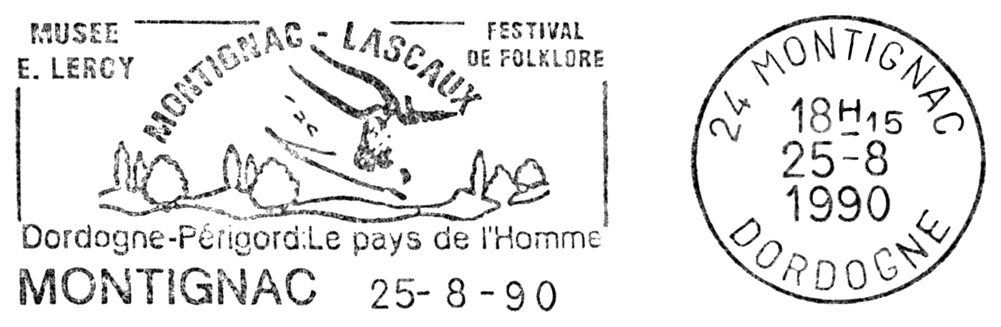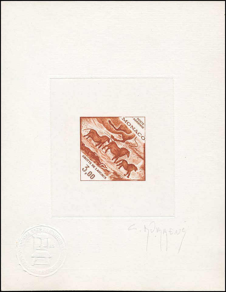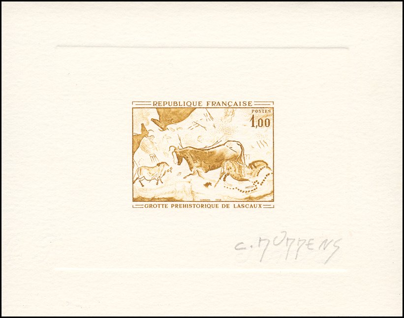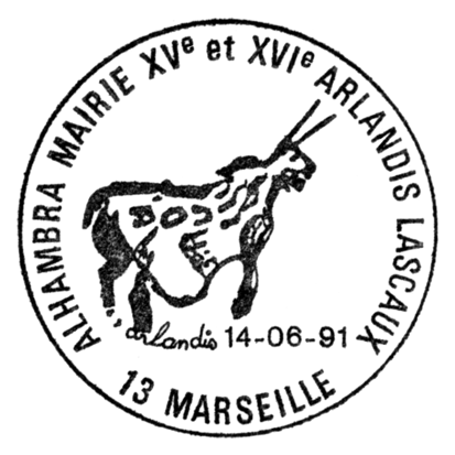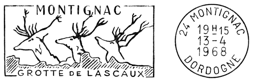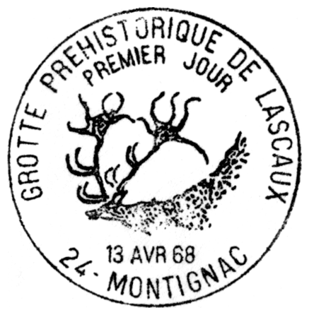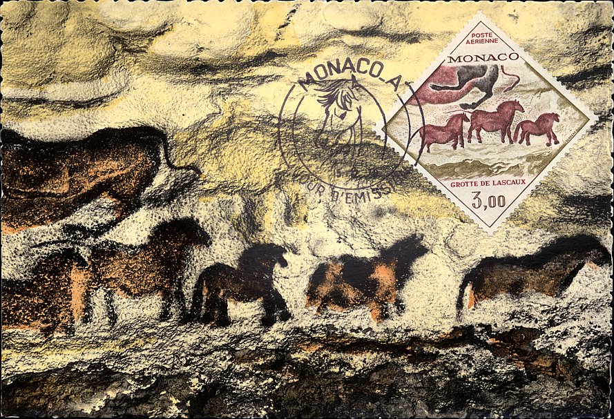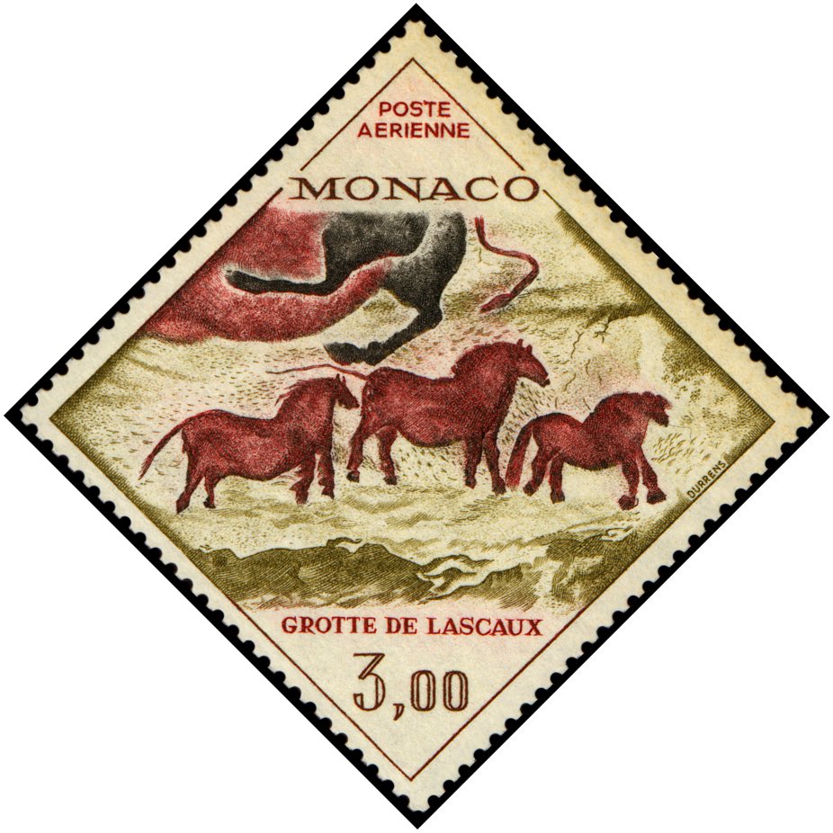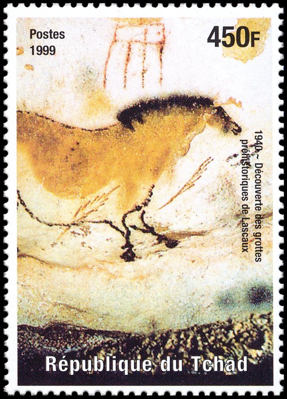 Tzw. chiński konik i geometryczny symbol — fragment malowidła z prawej ściany „Galerii Osiowej”, wąskiego wylotu z tzw. „Rotundy” w jaskini Lascaux (ten sam koń pokazany jest też w centrum znaczka Mali Mi 1265 i w lewym dolnym rogu znaczka Francja Mi 1619 — por. wyżej).