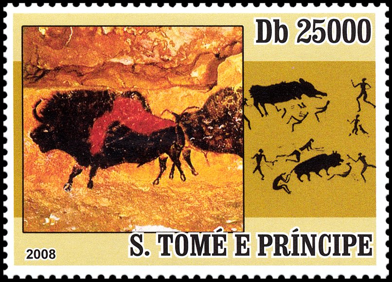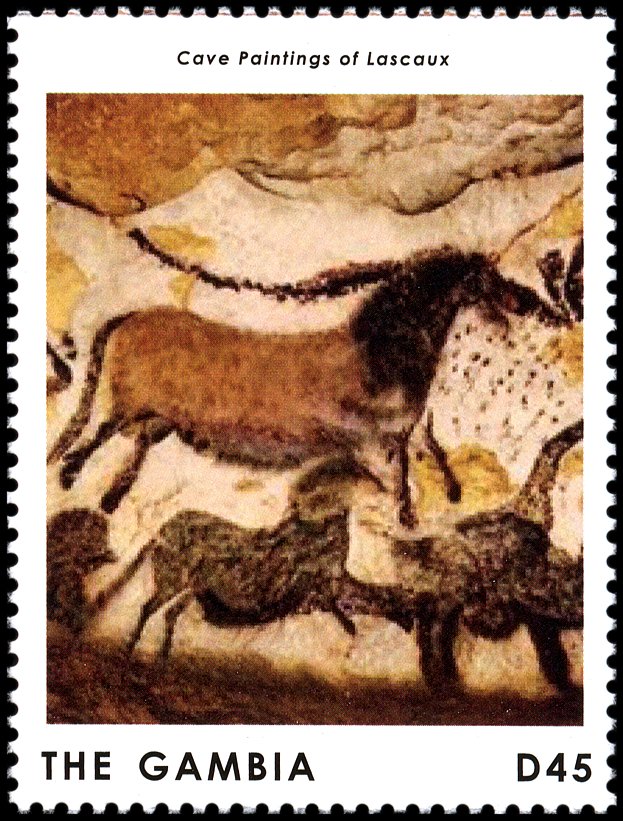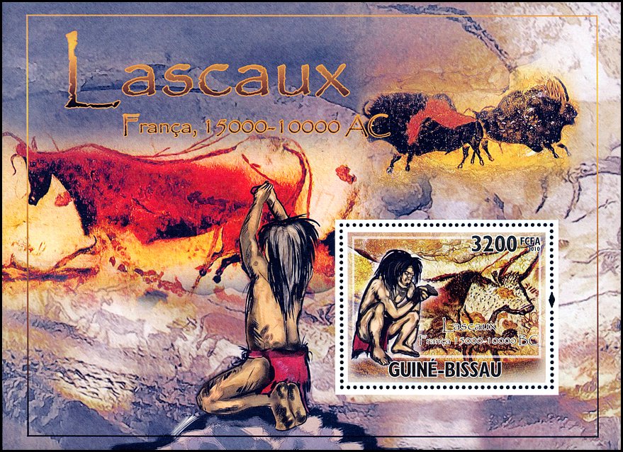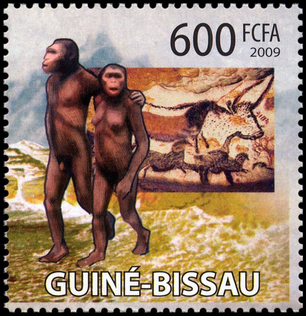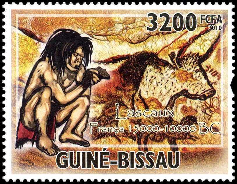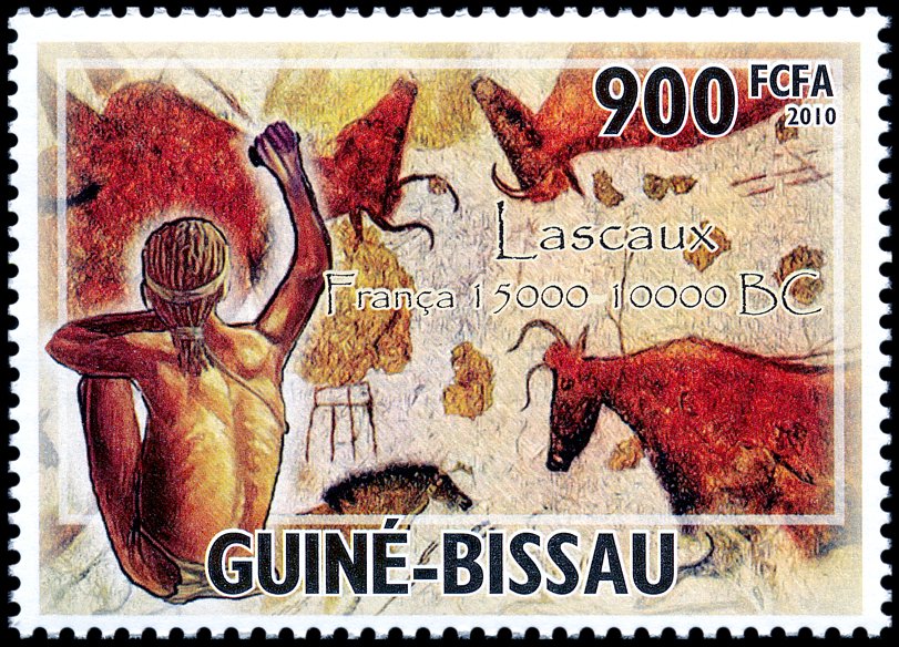 Tajemnicą projektanta znaczka Gwinei Bissau (Mi 4365) będzie, z jakiego powodu obok malowideł z Lascaux umieścił parę australopiteków, albo dlaczego na kolejnym znaczku (Mi 4924) pokazał człowieka powiększonego 2–3-krotnie w stosunku do malowidła za nim. W dodatku scena ta znajduje się w rzeczywistości na wysokości ponad 3–4 m, a nie gdzieś przy spągu jaskini!
