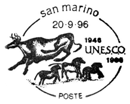 Wizerunki czerwonych krów znajdują się głównie na stropie „Galerii Osiowej”, a nie na jej ścianach, jak sugeruje to znaczek Gwinei Bissau Mi 4922 — to kolejny już błąd projektanta tej emisji. Natomiast krowa przedstawiona na bloku Mi 1058 (poniżej znaczka) pokazana jest w lustrzanym odbiciu (to samo zwierzę, ale w prawidłowej pozycji, znajduje się m.in. w centrum znaczka Francji Mi 1619, a także w prawym dolnym rogu wspomnianego już znaczka Gwinei Bissau Mi 4922).